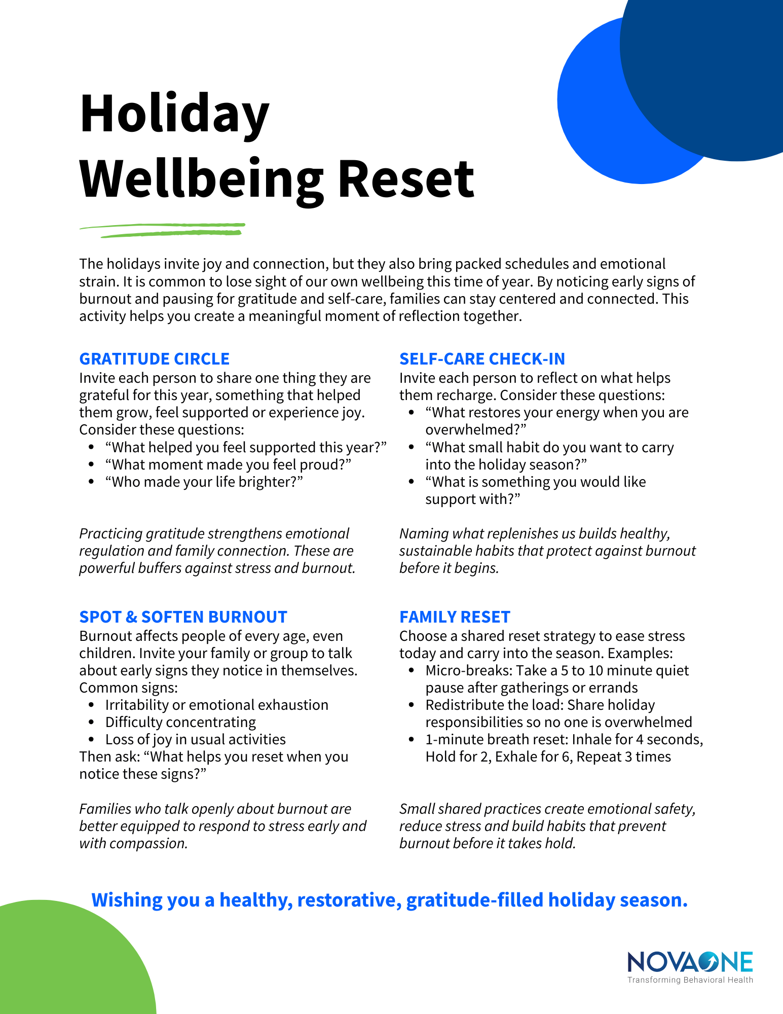 Holiday Wellbeing Reset Activity
